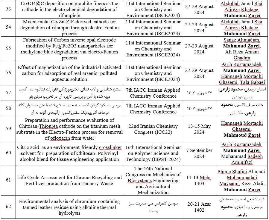 M. Zarei, F. Ghanbari, A. Kanani, A. Hasanzadeh, E. Farimand |